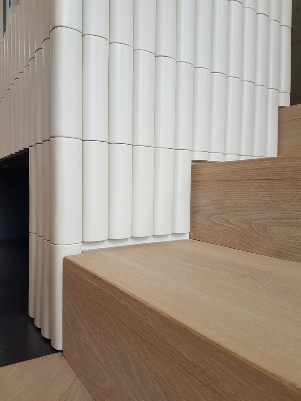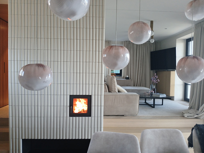 Zentraler Kachelofen mit Lisenenkacheln